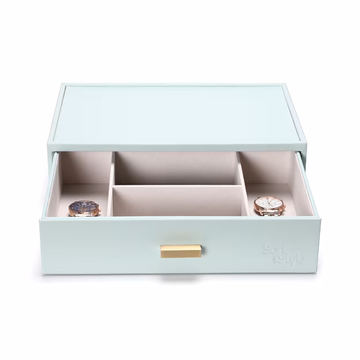 This aqua color jewelry box is designed to bring ease and clarity to the moments you get ready, keeping your pieces visible, protected, and within reach so your routine feels calm, intentional, and effortless.